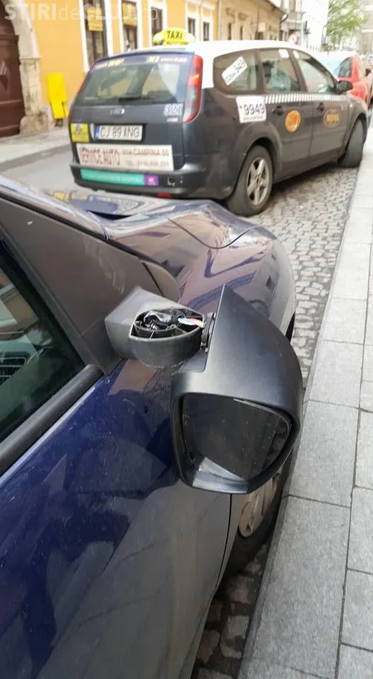 Cluj: Un ”dement” a rupt toate oglinzile mașinilor de pe I.C. Brătianu - FOTO
