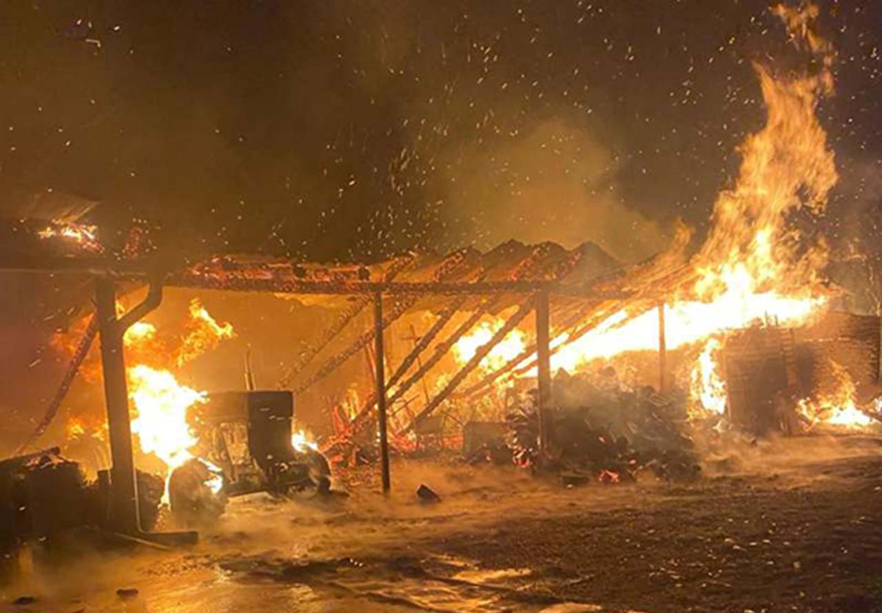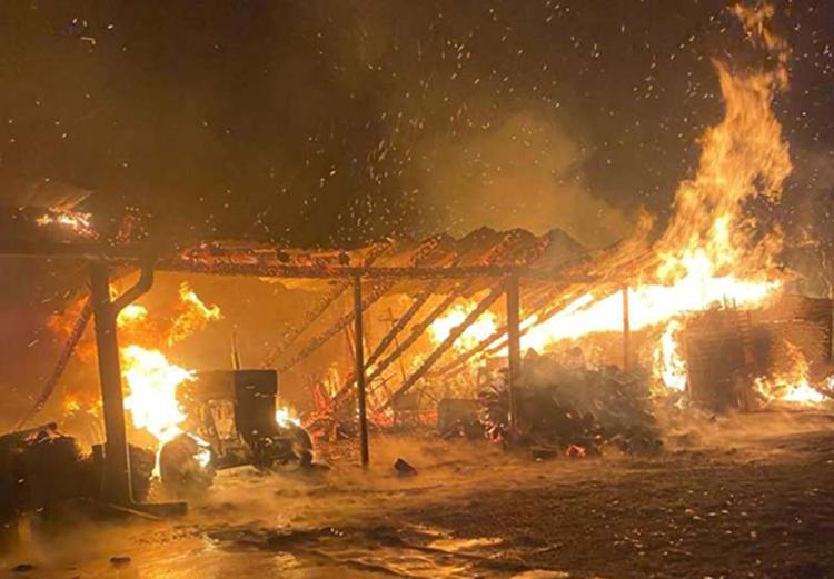 Cluj: Un incendiu violent a cuprins un depozit cu fân. În interior se află mai multe utilaje agricole