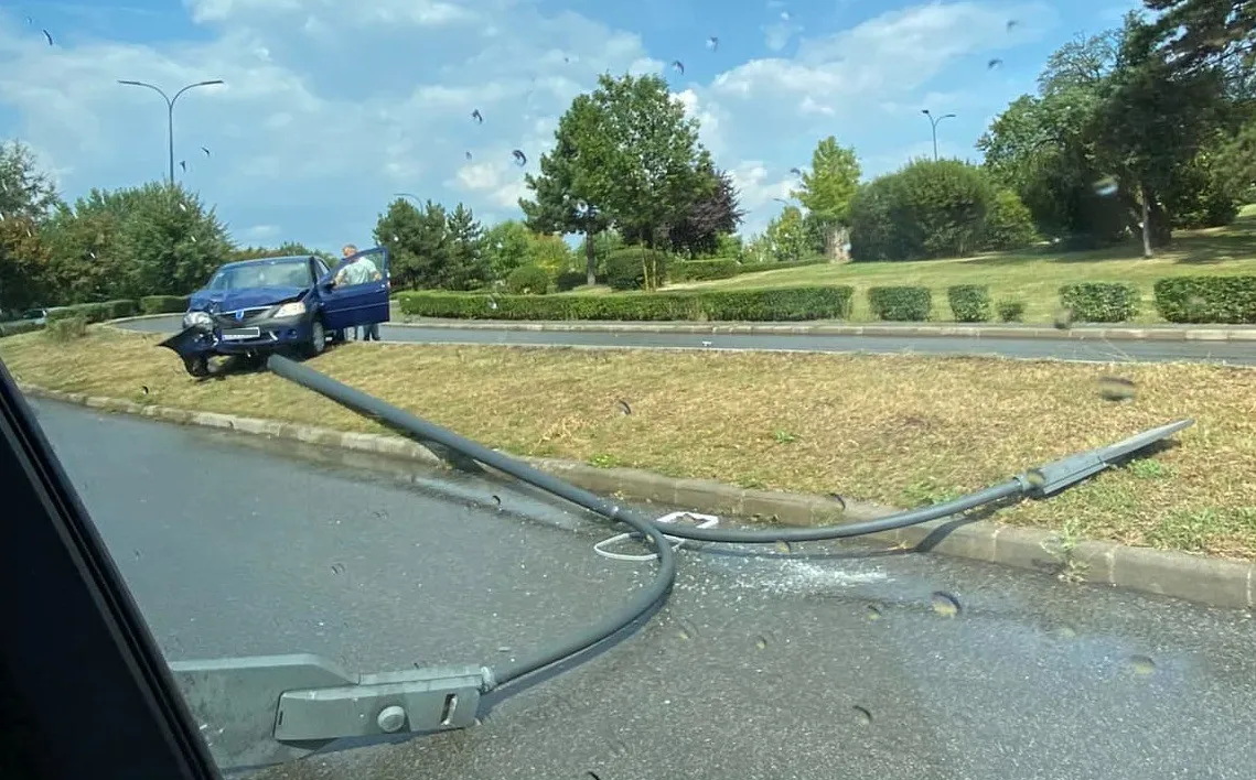 Cluj: Un Logan a doborât un stâlp de lumină pe drumul spre Florești. Traficul pe o bandă este blocat
