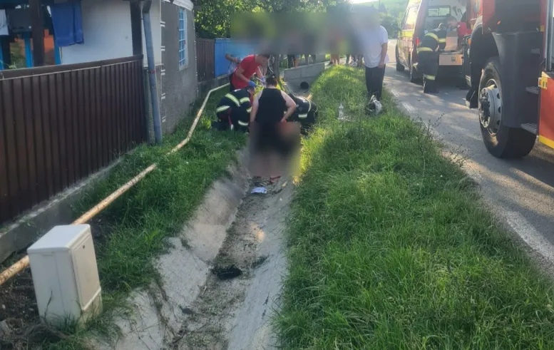 Cluj- Un motociclist a fost rănit în urmă cu puțin timp într-un accident la Răscruci, în Bonțida. Motocicleta a fost proiectată în șanț FOTO