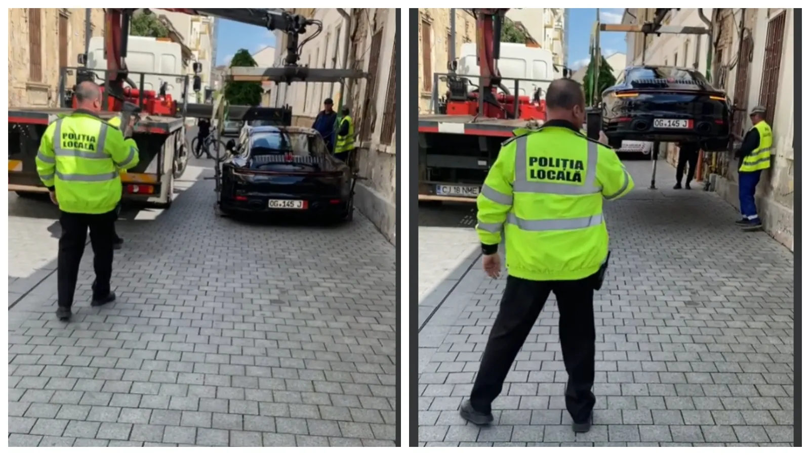Cluj - Un Porsche de 200.000 de euro a fost ridicat de Poliția Locală. Cum s-a făcut dreptate - VIDEO