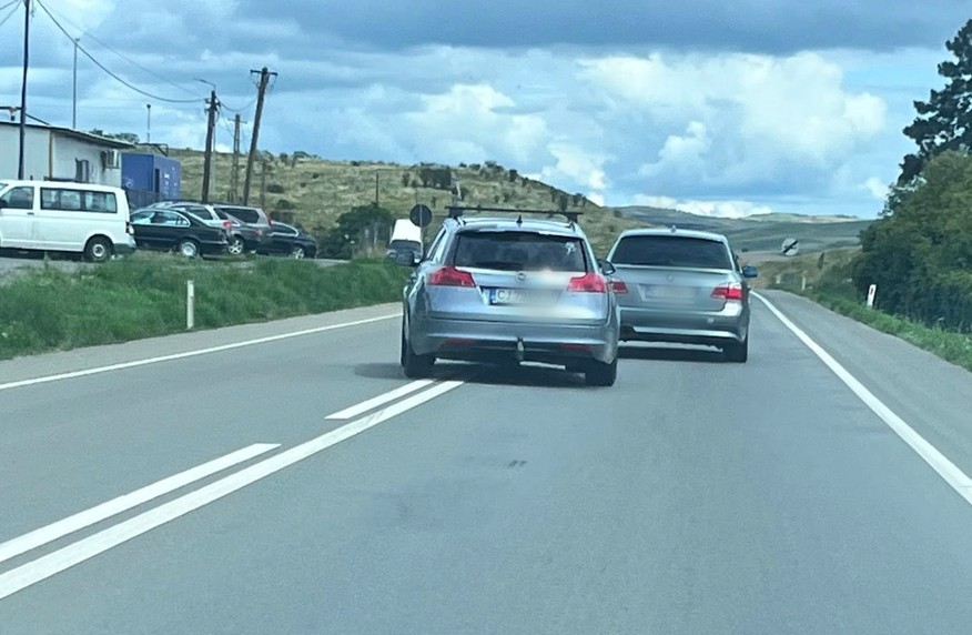 După manevra periculoasă, șoferul a continuat să conducă agresiv, depășind alte autoturisme în mod repetat, fără să țină cont de siguranța celorlalți participanți la trafic.