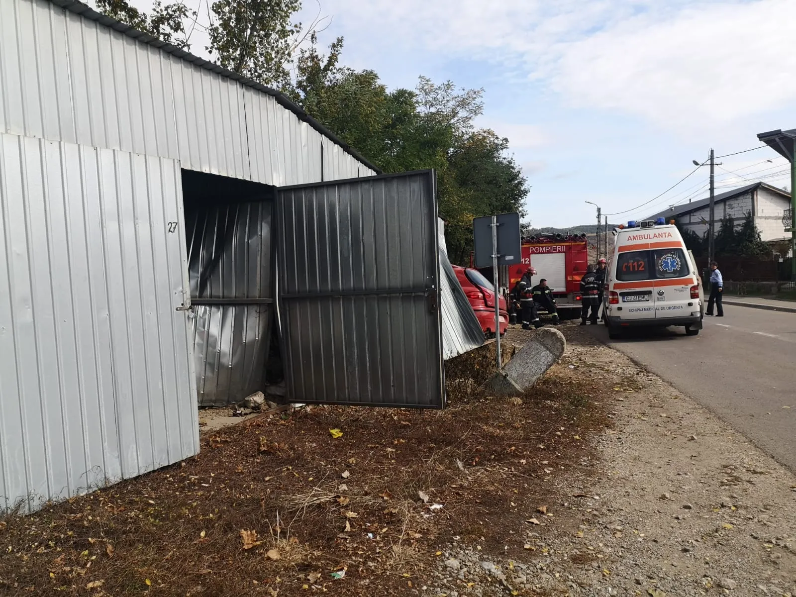 Din prmele informații, un conducător auto nu ar fi redus viteza în curbă, a derapat și a intrat în garajele din partea stângă a sensului său de mers.