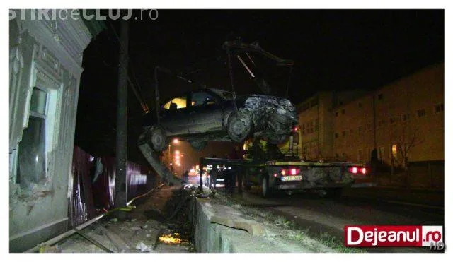 Evenimentul rutier a avut loc putin dupa ora 2. Soferul impreuna cu un prieten circulau pe directia Cluj-Napoca – Dej, dar intr-o curba, acesta a pierdut controlul asupra directiei de mers, a patruns pe contrasens, a rupt un parapet metalic si s-a infipt cu masina in peretele unei case, potrivit dejeanul.ro.