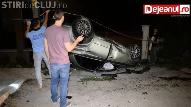 CLUJ: Un șofer s-a răsturnat cu mașina, după ce a adormit la volan VIDEO
