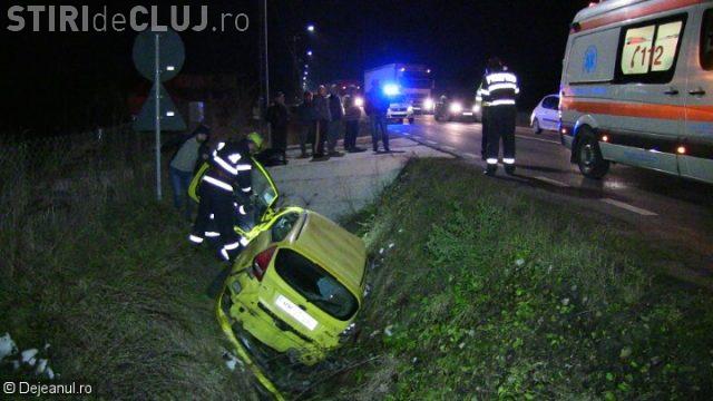 CLUJ: Un șofer s-a răsturnat cu mașina într-un șanț adânc ce doi metri VIDEO