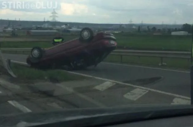 Cluj: Un șofer s-a răsturnat, evitând un accident
