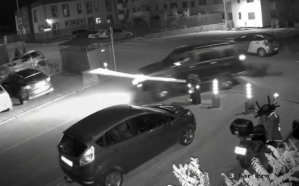 În imagini se vede cum vehiculul se apropie de o stradă dintr-o zonă rezidențială cu acces restricționat, prevăzută cu o barieră, pe strada Urușagului din Florești. Fără să frâneze, șoferul intră direct în barieră și o lovește în plin. Nici ulterior, după ce a lovit bariera nu încetinește și continuă să meargă ca și cum nimic nu s-ar fi întâmplat.