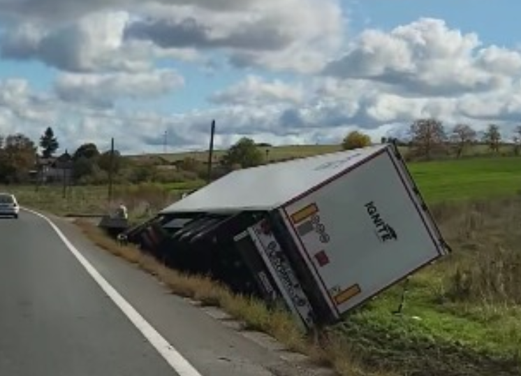 Din primele informații este vorba de un TIR care s-a răsturnat în afara părții carpsabile.