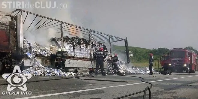 CLUJ: Un TIR s-a răsturnat și a luat foc pe varianta ocolitoare Gherla VIDEO