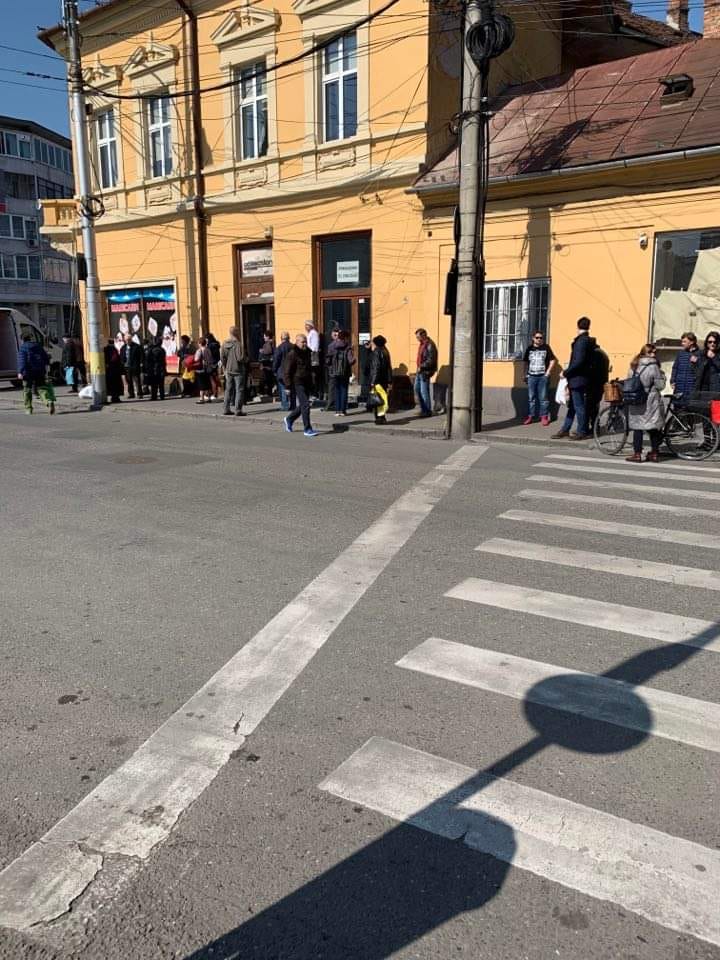 ”Acum la magazinul cu carne de curcan, etc. de lângă piața din Mihai Viteazul. Și noi stăm în casa pentru ei, iar ei stau unul peste altul”, a comentat cel care a postat fotografia pe Facebook..