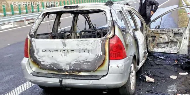 Un autoturism a fost mistuit de flăcări, zilele trecute, chiar în timp ce se deplasa pe Autostrada Transilvania.