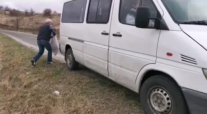Un șofer clujean a filmat imediat după ce a aruncat un sac cu gunoi într-un șanț din satul Văleni, comuna Călățele, și obligat să îl recupereze.