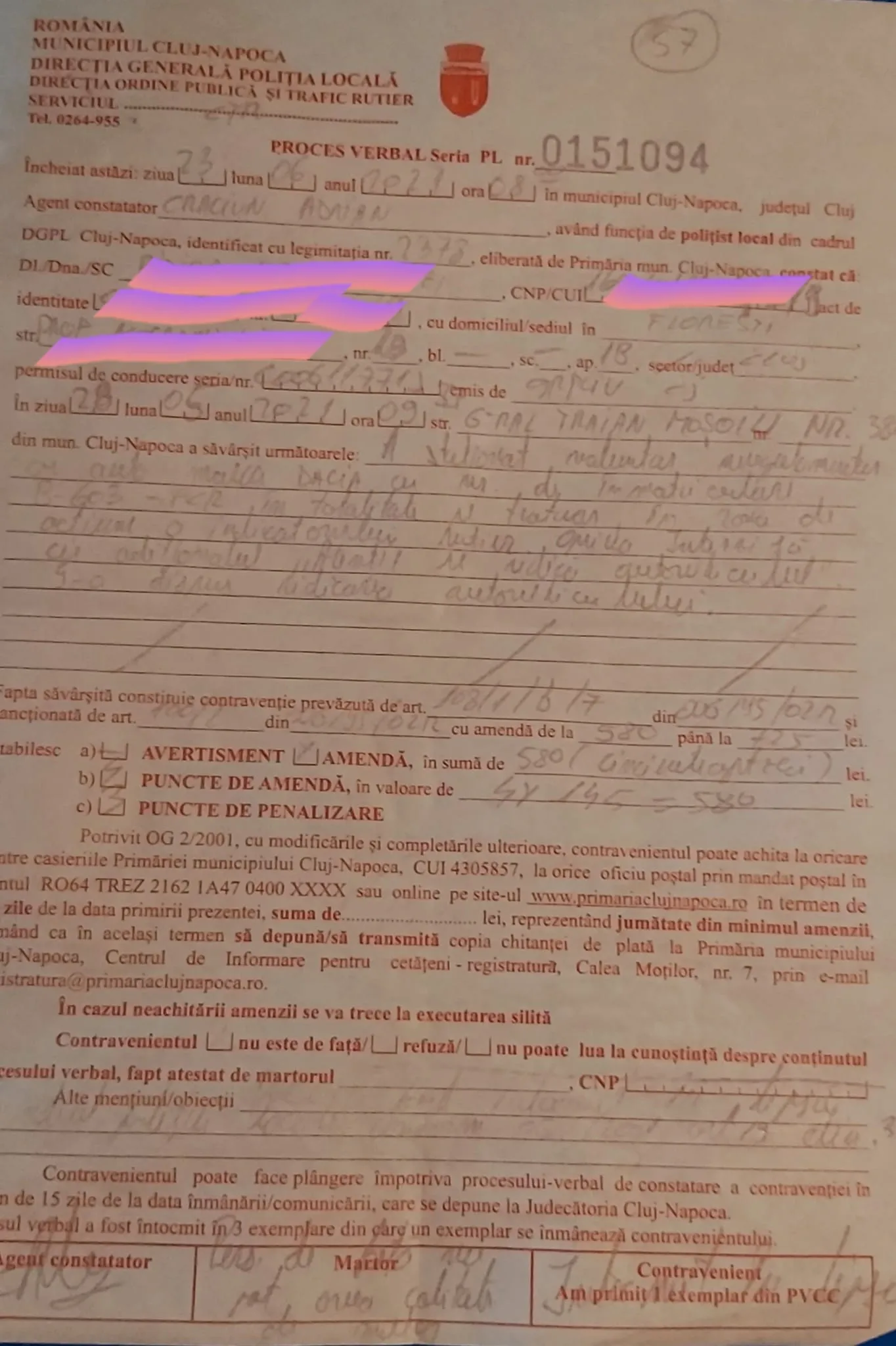 Clujean amendat de două ori de Poliția Locală pentru aceeași faptă: Domnule Boc, fii primar, scapă-te de pleava asta