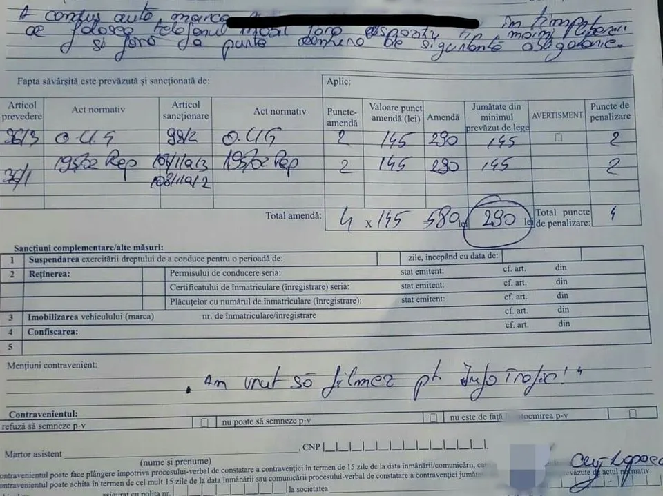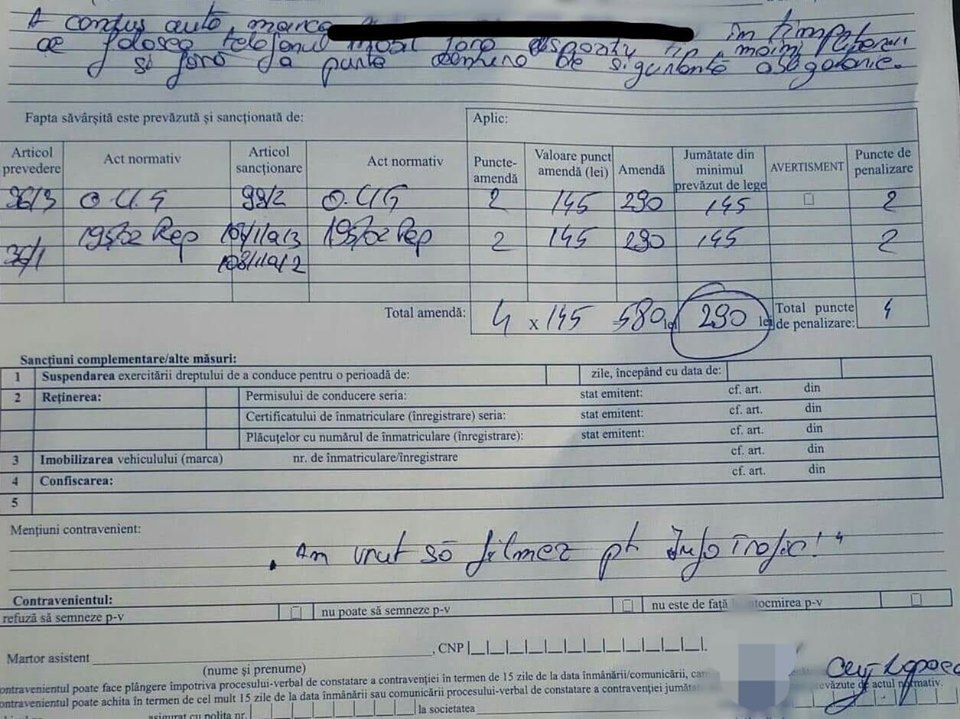 Un clujean a fost amendat de Poliția Rutieră pentru că filma un incident rutier în timp ce conducea, pentru a putea posta pe Facebook.