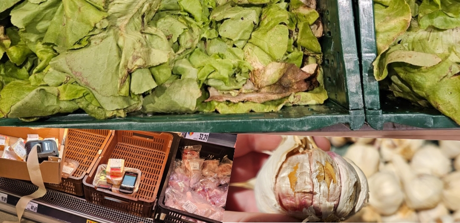 Acesta subliniază că raionul de legume-fructe este un dezastru, iar aparatele folosite de angajați sunt ținute peste alimente.