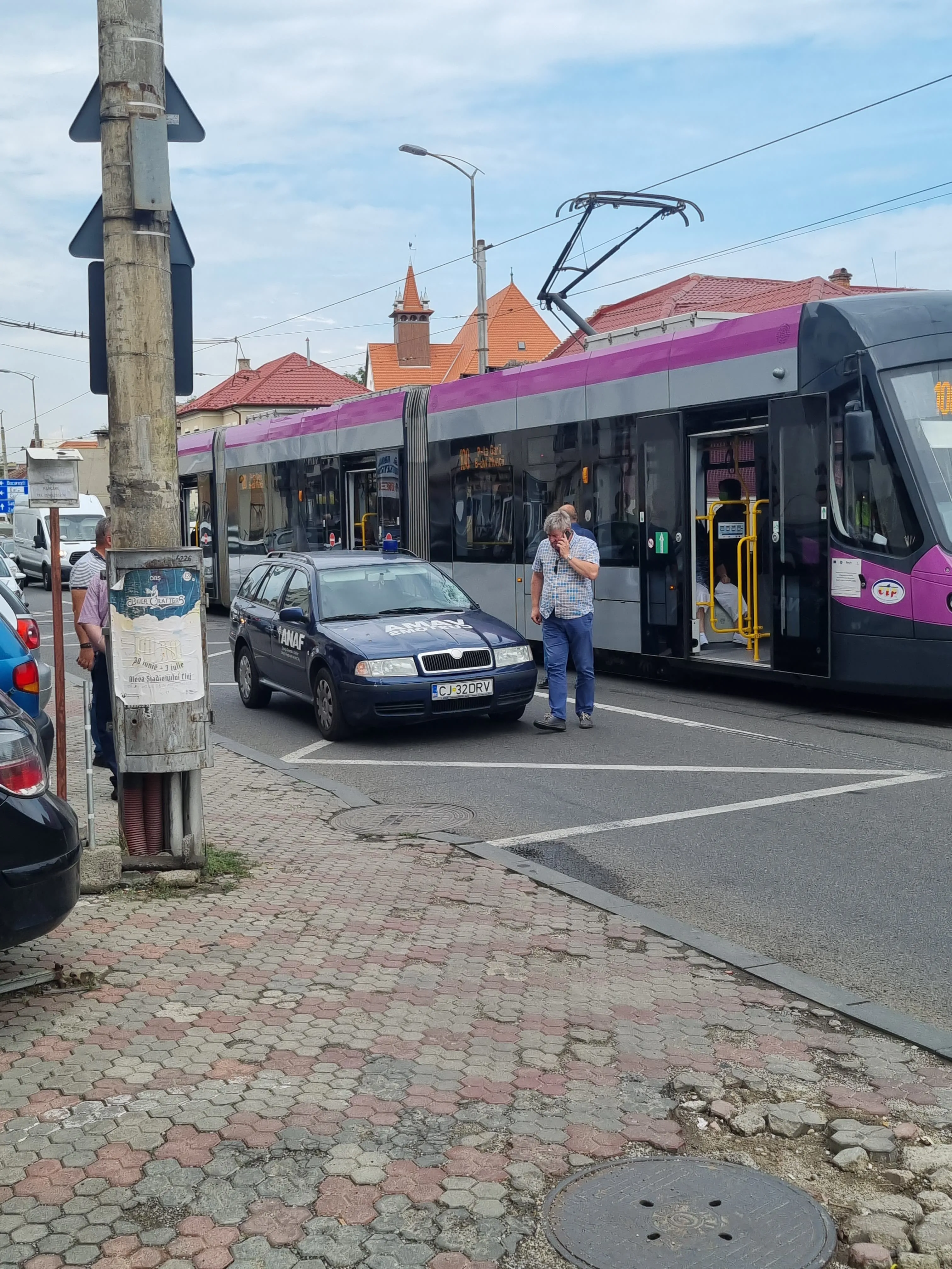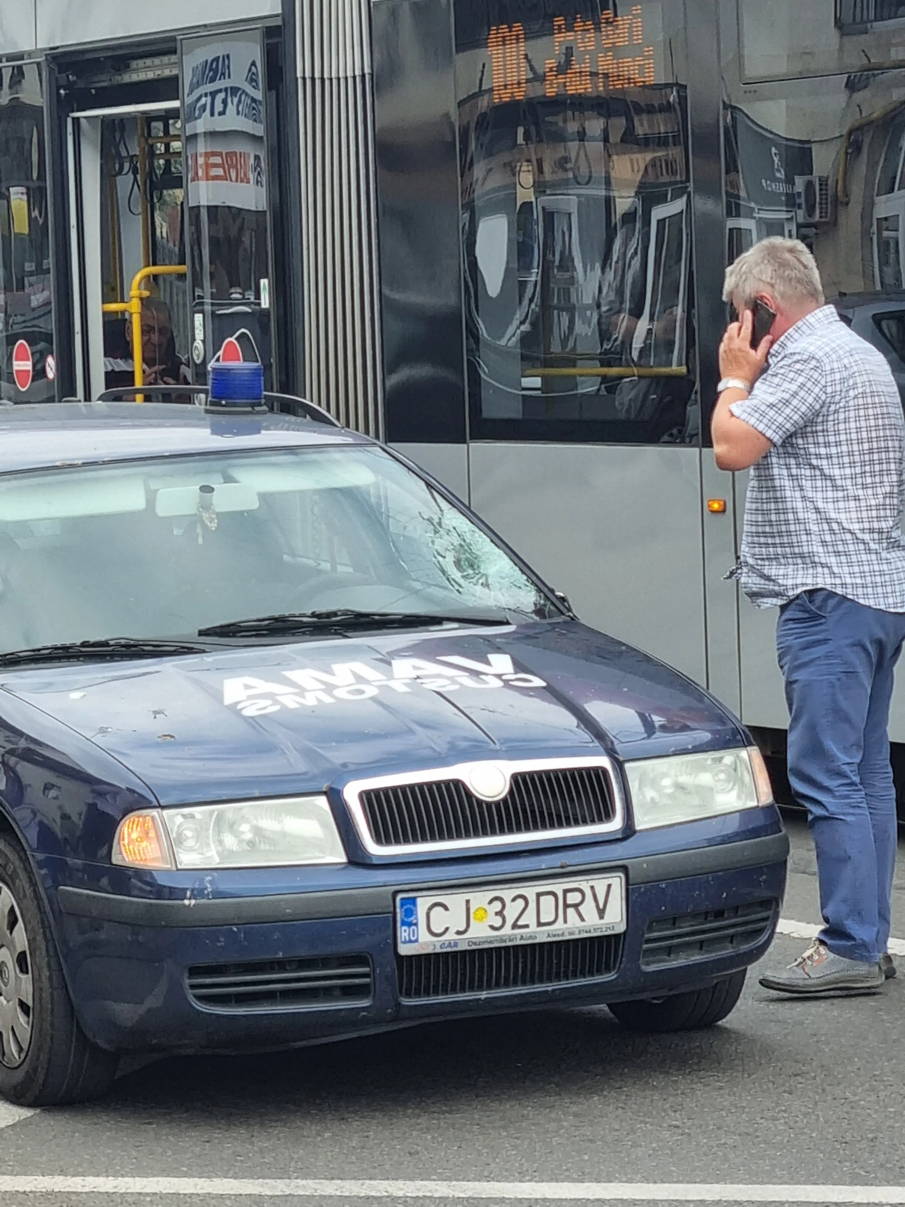 Clujean lovit de mașina ANAF -ului, în timp ce cobora din tramvai - FOTO