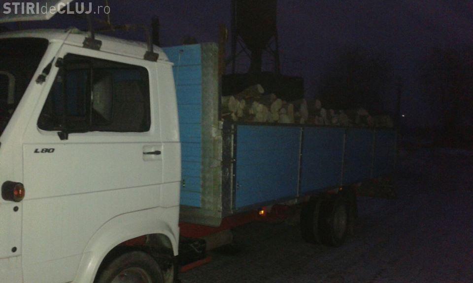 Clujean prins cu un camion plin de lemne tăiate ilegal. Polițiștii au confiscat atât lembul, cât și vehiculul FOTO