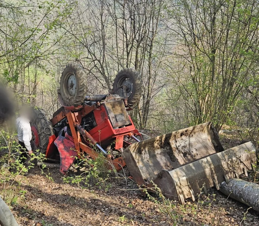 Un bărbat prins sunt un tractor care scotea arbori din pădure, la Mărișel, a fost salvat de sub utilaj de alți localnici.