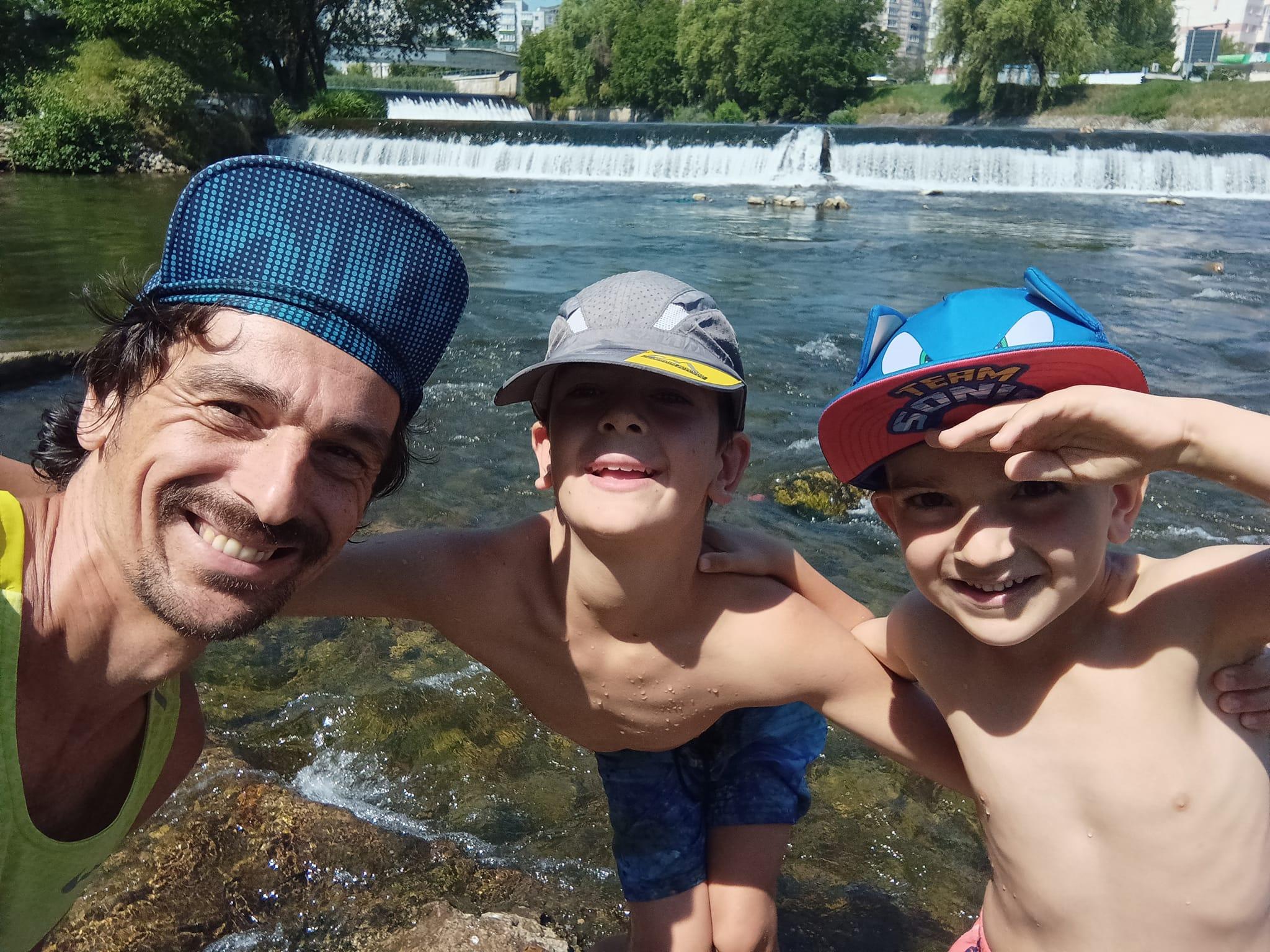 Am găsit un loc de înot, unde apa e peste doi metri, lângă cascadă și zidurile microhidrocentralei. Locul nu e mare, în general apa e până la șold, dar e o zonă îndeajuns de bună pentru înot. Azi l-am învățat stilul bras pe Matei aici, anii viitori pe Timo.