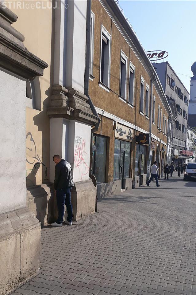 Chiar dacă toaleta din Piața Unirii era la doi pași, un clujean s-a trezit că poate urina fără probleme pe Biserica Evanghelică din centrul Clujului.