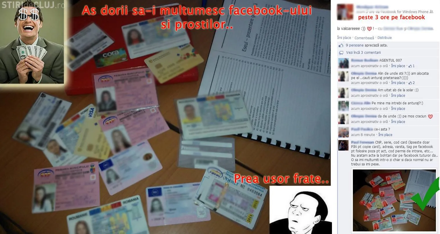 Mai mulți tineri inconștieți din Cluj și-au postat pe Facebook, la vedere, actele de identitate și cardurile.