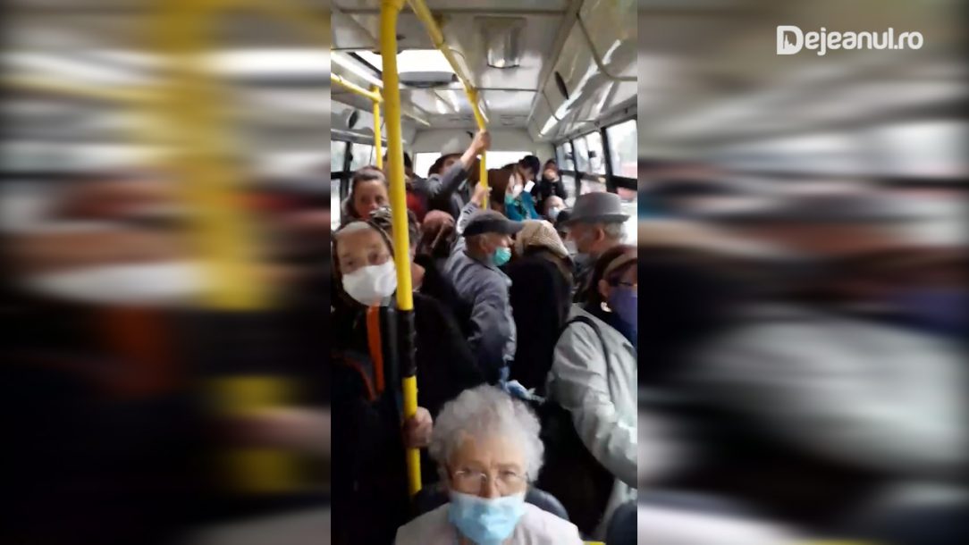 Clujeni ținuți ca animalele într-un autobuz! Distanțarea socială e o glumă - VIDEO
