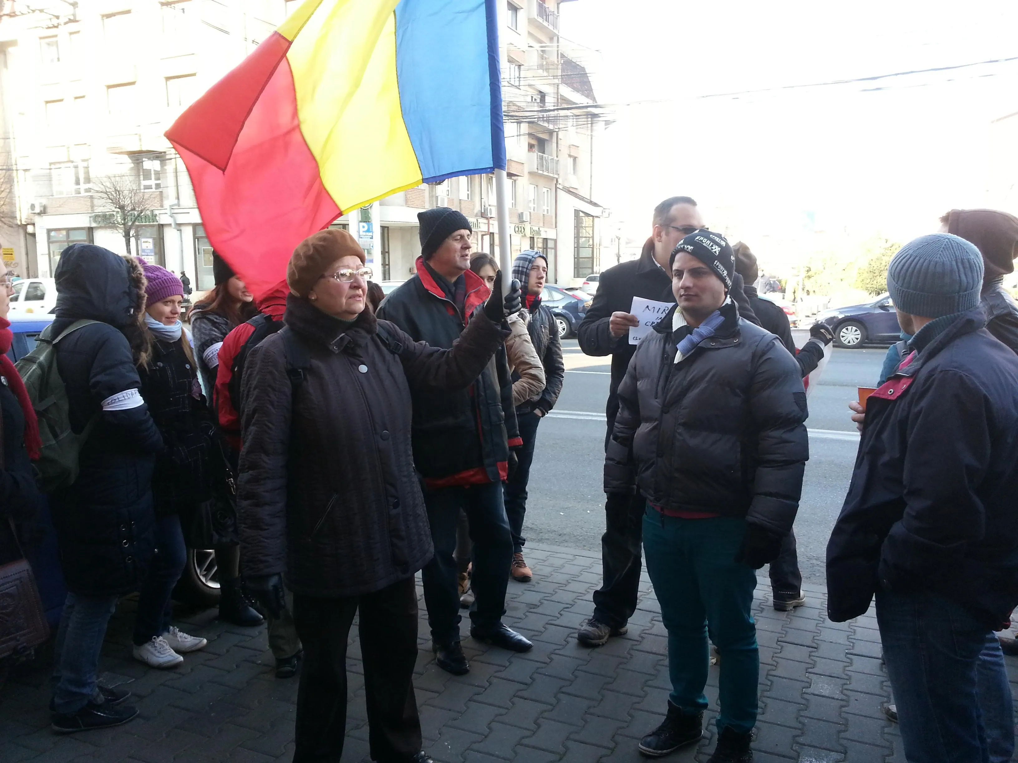 Manifestanții s-au adunat la Prefectura Cluj, în jurul 12.00, având steaguri tricolore şi banderole pe braţ şi afişe cu mesaje precum: ”Solidaritate Pungeşti”, ”Nu cianurii şi gazelor de şist”, ”Cluj - solidar cu Pungeşti”.