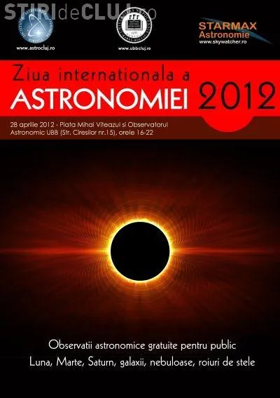 Evenimentul "Ziua Internationala a Astronomiei" are loc azi, 28 aprilie, in Piata Mihai Viteazul si la Observatorul Astronomic al UBB, incepand cu ora 14:00.