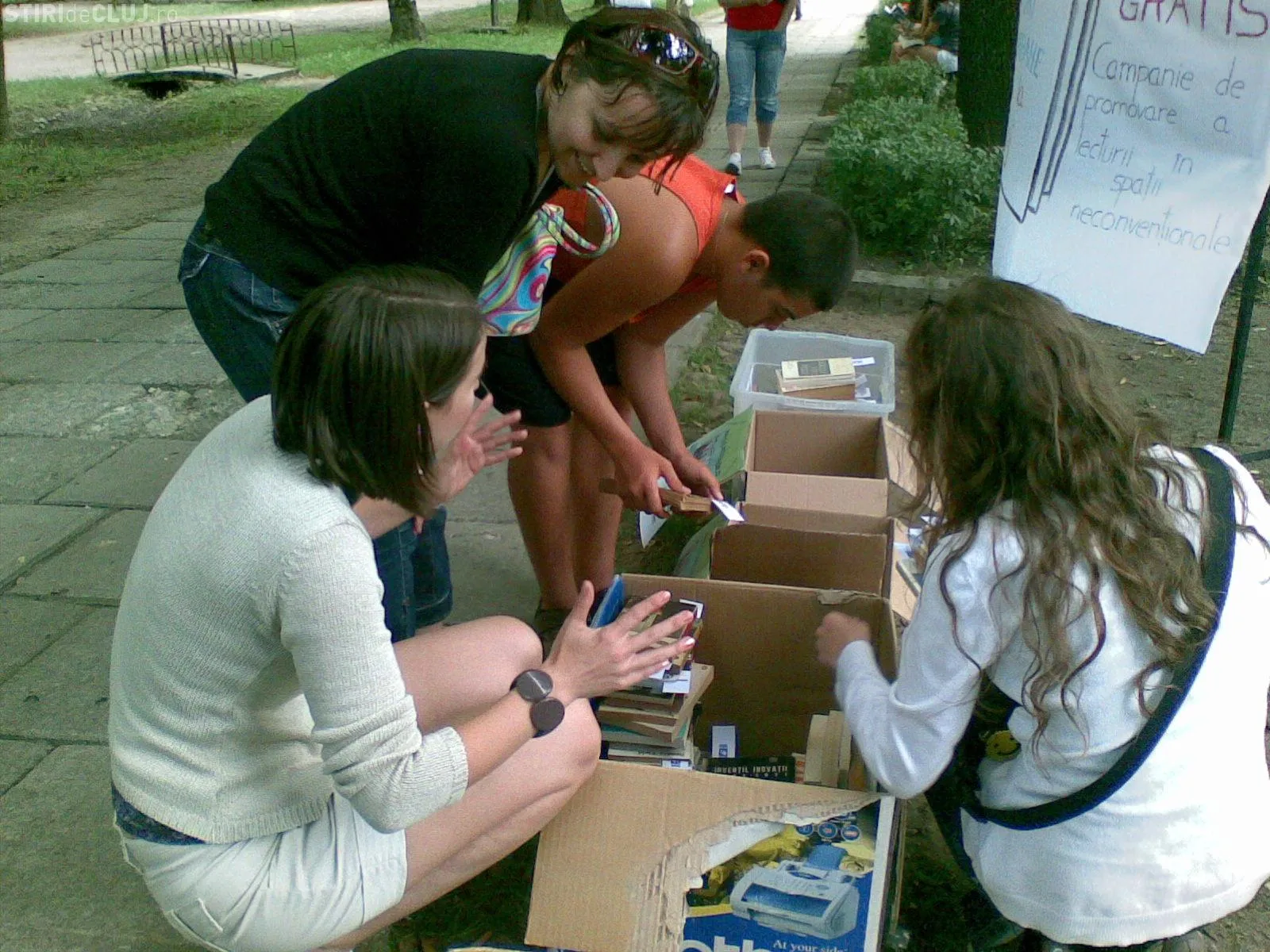 Voluntarii au impartit clujenilor o parte din cele peste 200 de carti donate in cadrul unei campanii la punctele de colectare de la sediile de cartier ale Primariei Cluj-Napoca si din Iulius Mall.