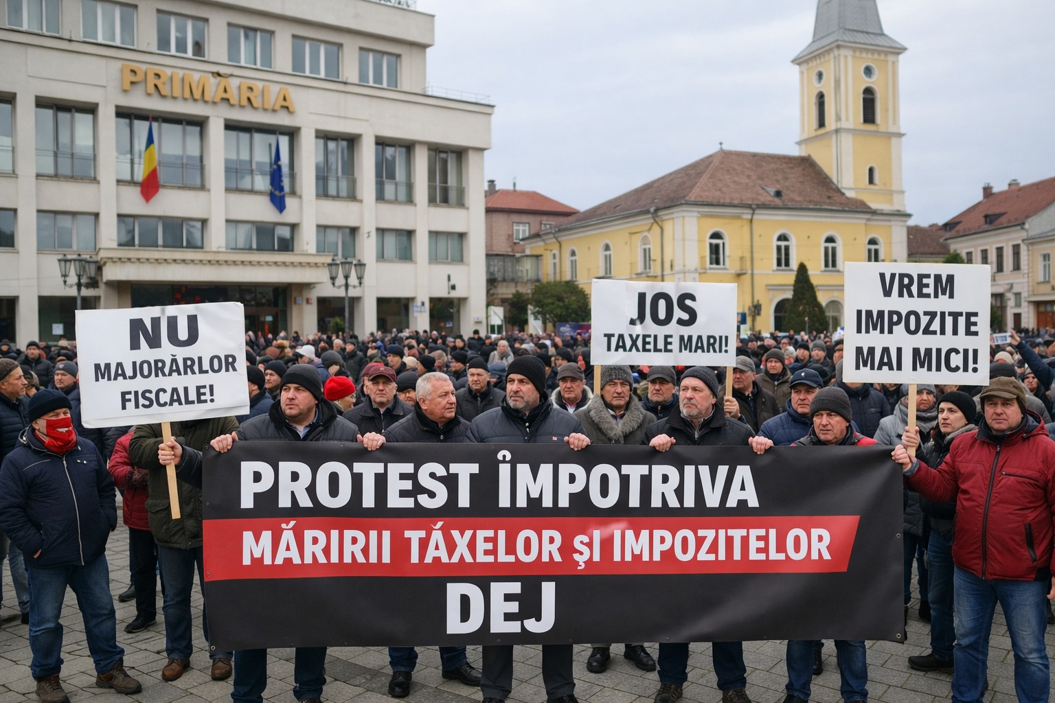 Tot joi, 29 ianuarie, la Dej a avut loc un protest în fața Primăriei, organizat pe ploaie, unde participanții au afișat mesaje precum „Sărăcia nu se combate cu taxe” și „Jos taxele ilegale!”. Manifestanții au cerut administrației locale să revină asupra deciziilor privind creșterea impozitelor. Presa locală a asociat protestul cu o acțiune politică, fiind susținut de AUR și Partida Romilor, deși autorizația fusese solicitată de o persoană fizică.