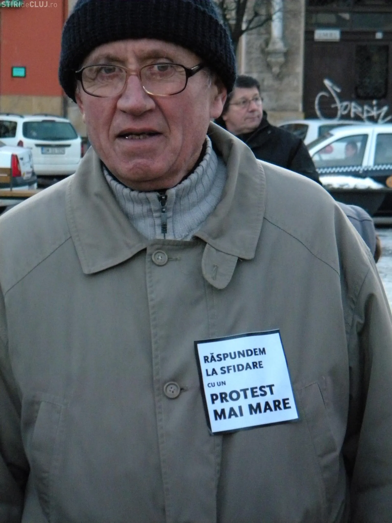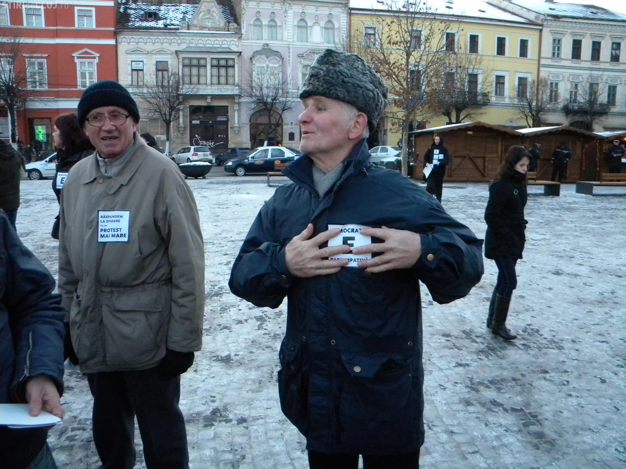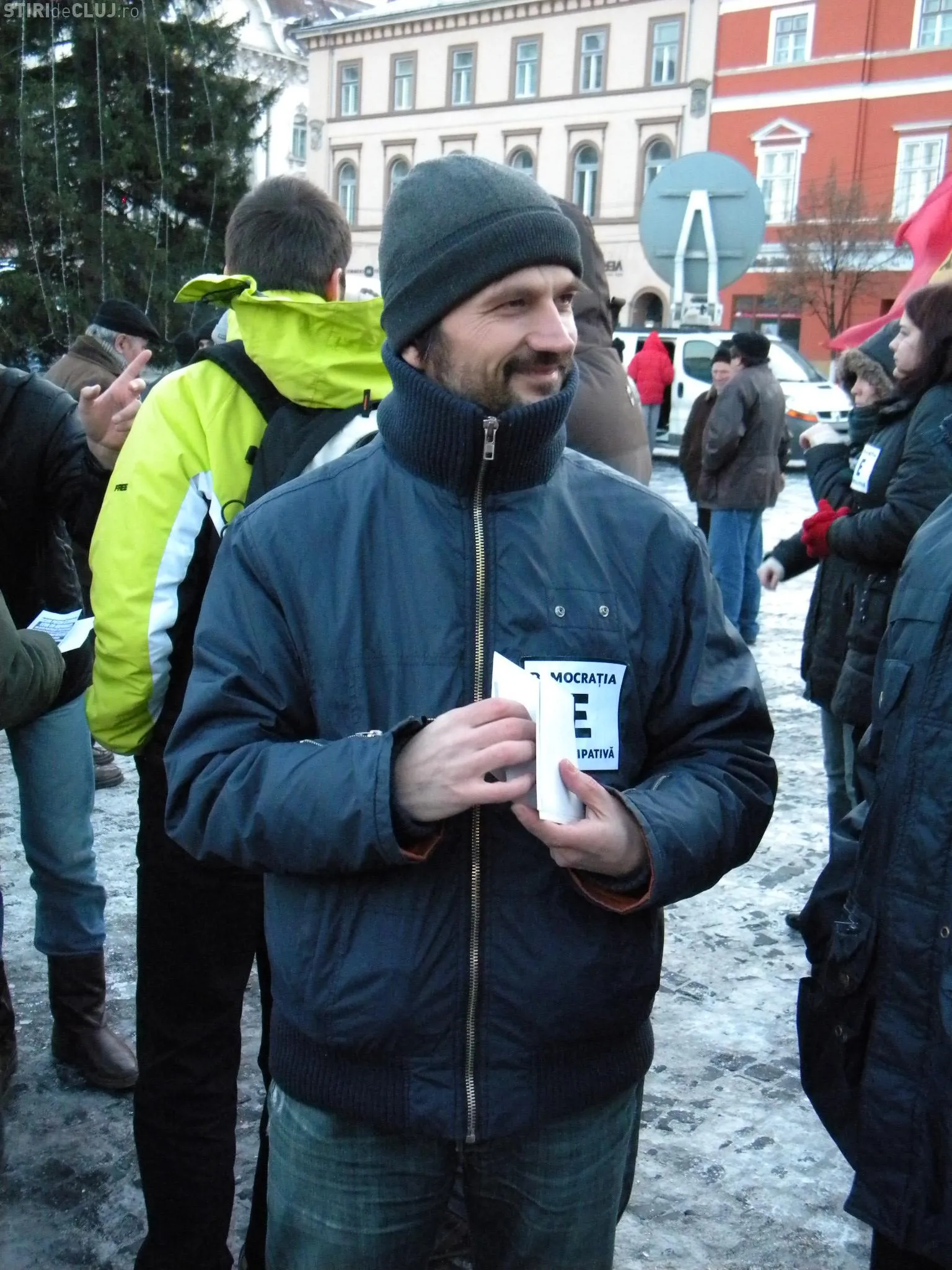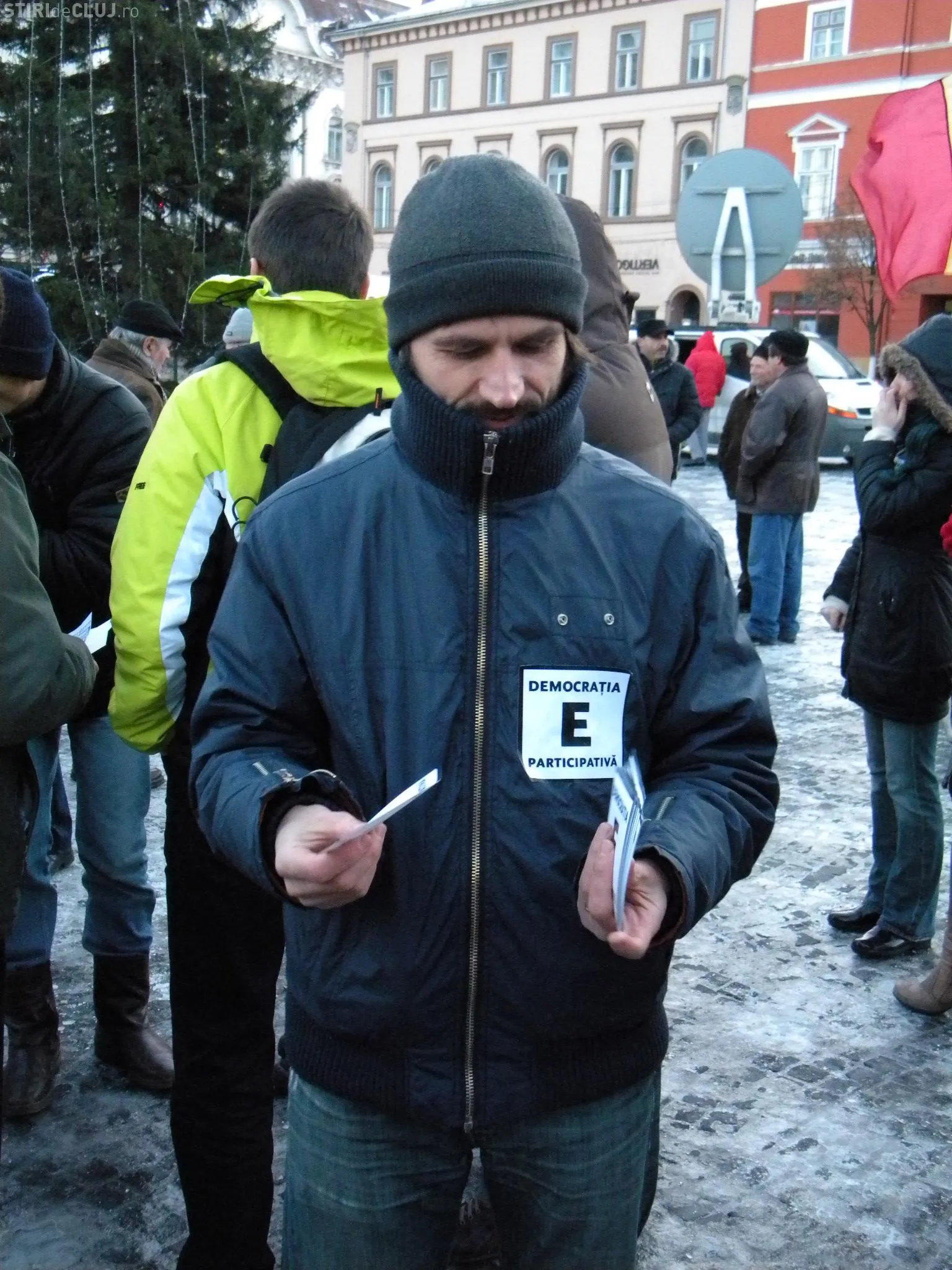 Protest in Piata Unirii! Circa 100 de clujeni au iesit sa ceara demisia lui Basescu FOTO si VIDEO