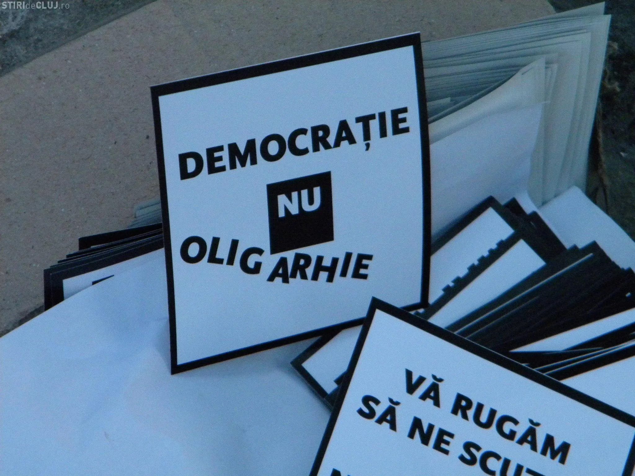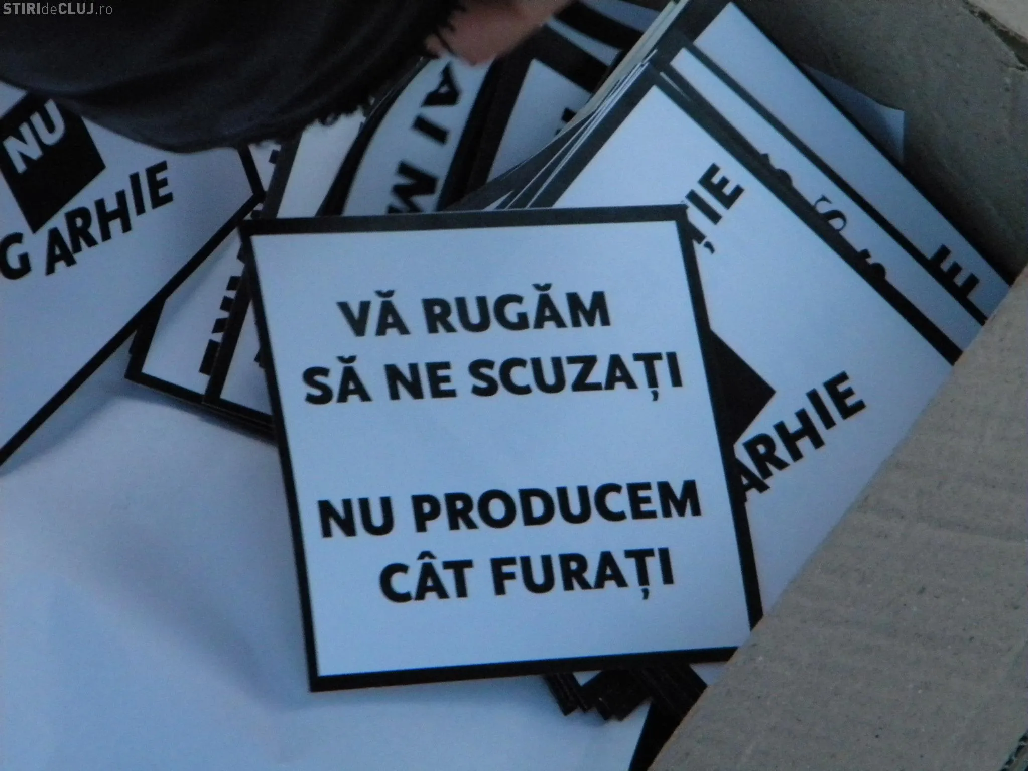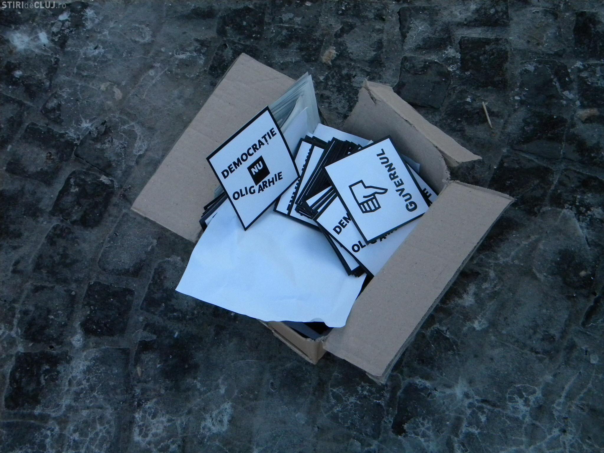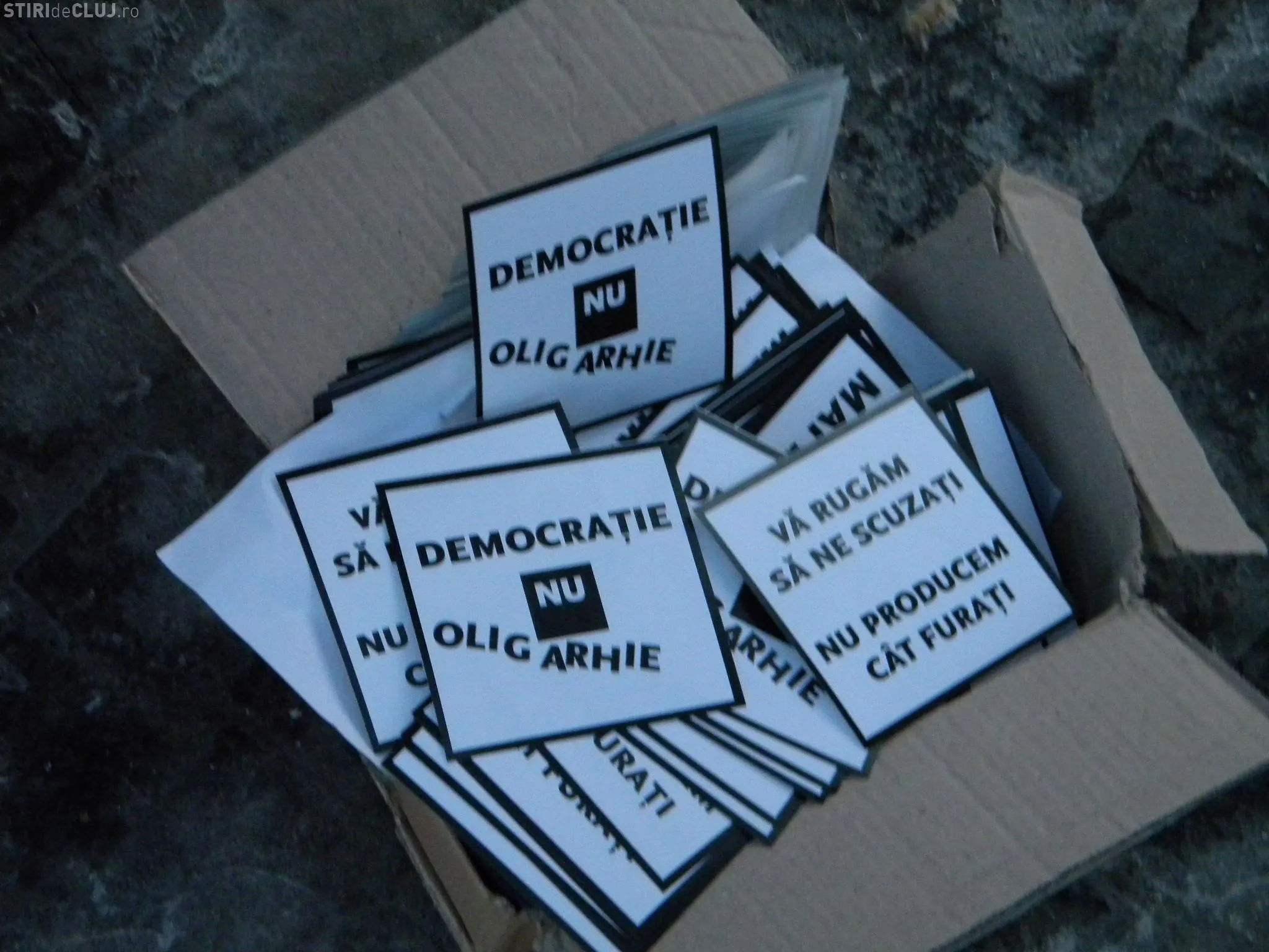 Clujenii au primit stickere cu sloganuri de protest impotriva sistemului corupt VIDEO si FOTO