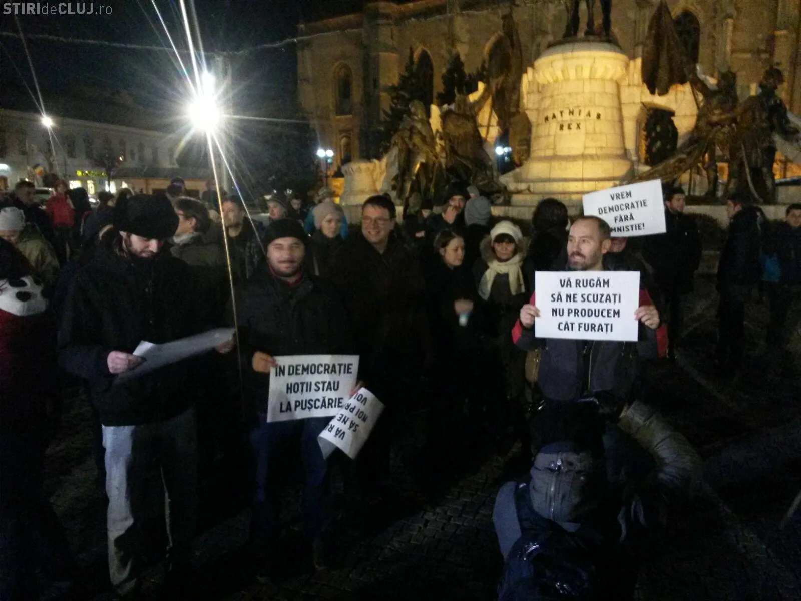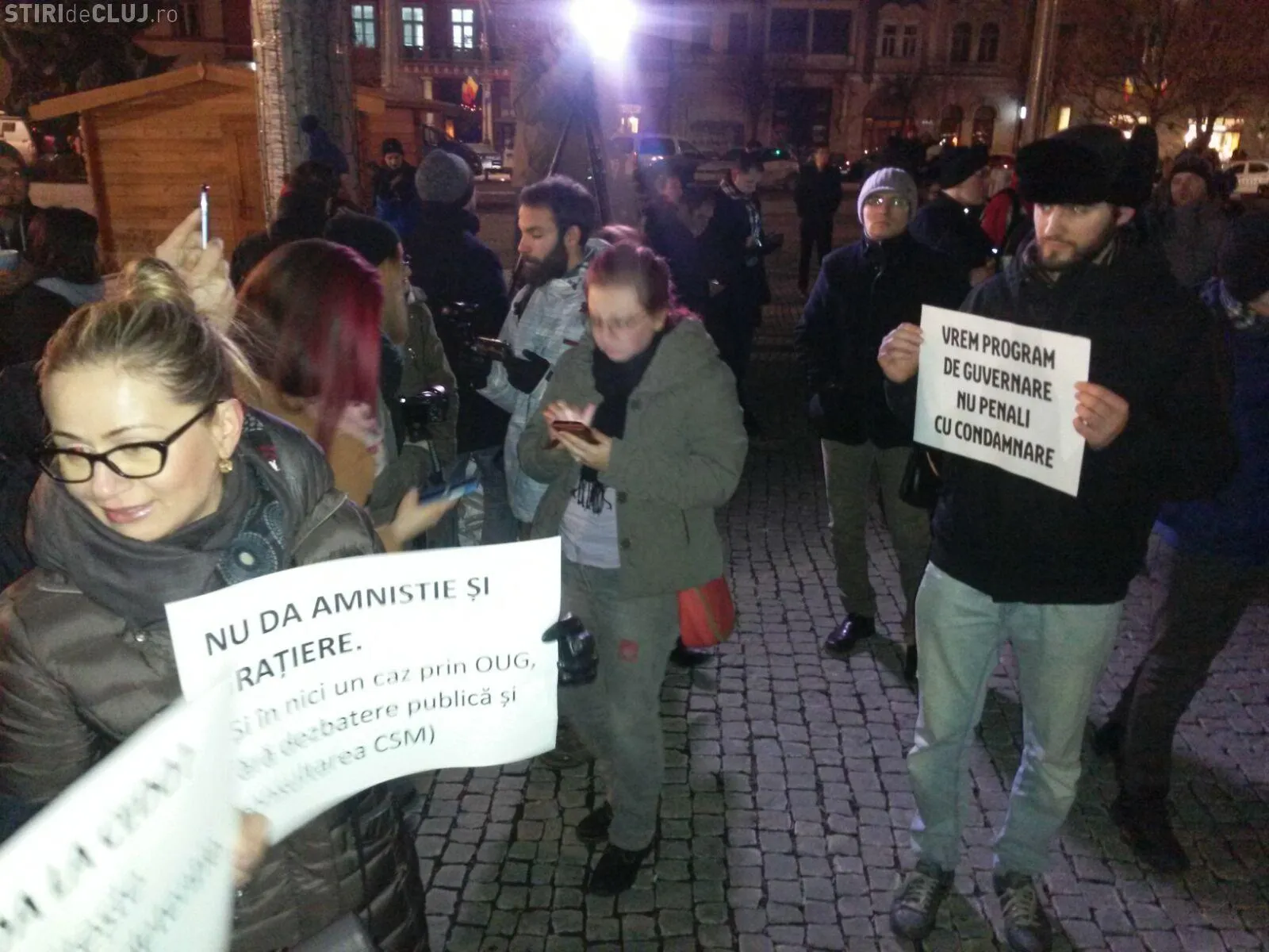 Oamenii au scandat în Piața Unirii: ”Vrem program de guvernare, nu penali cu condamnare!”, ”Fără graţiere, fără amnistie, Clujul nu are amnezie!”, ”Vrem democraţie fără amnistie, în democraţie hoţii stau la puşcărie!” sau ”Hoţi şi politicieni, stop de la cetăţeni!”.