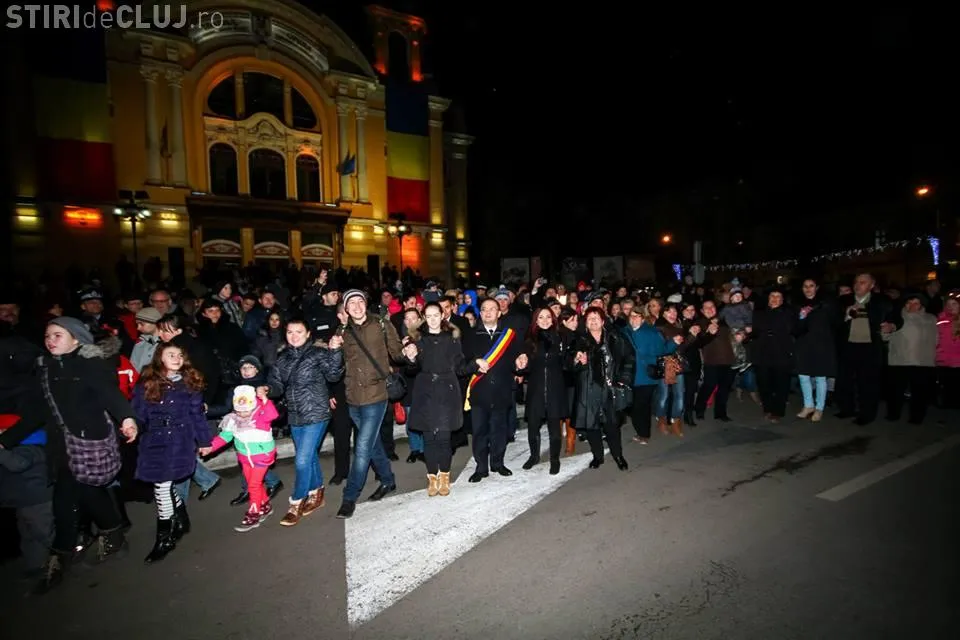 Clujenii au sărbătorit Unirea Principatelor în centrul orașului. Au jucat hora cu primarul și au asistat la focul de artificii FOTO VIDEO