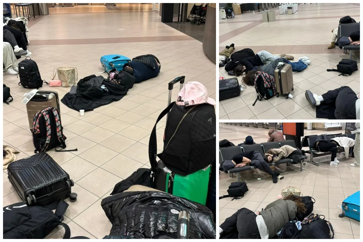 Clujenii care trebuiau să zboare din Malmö, inclusiv un grup de elevi, au dormit pe jos în aeroport, după anularea cursei. WizzAir nu le-a oferit nimic!