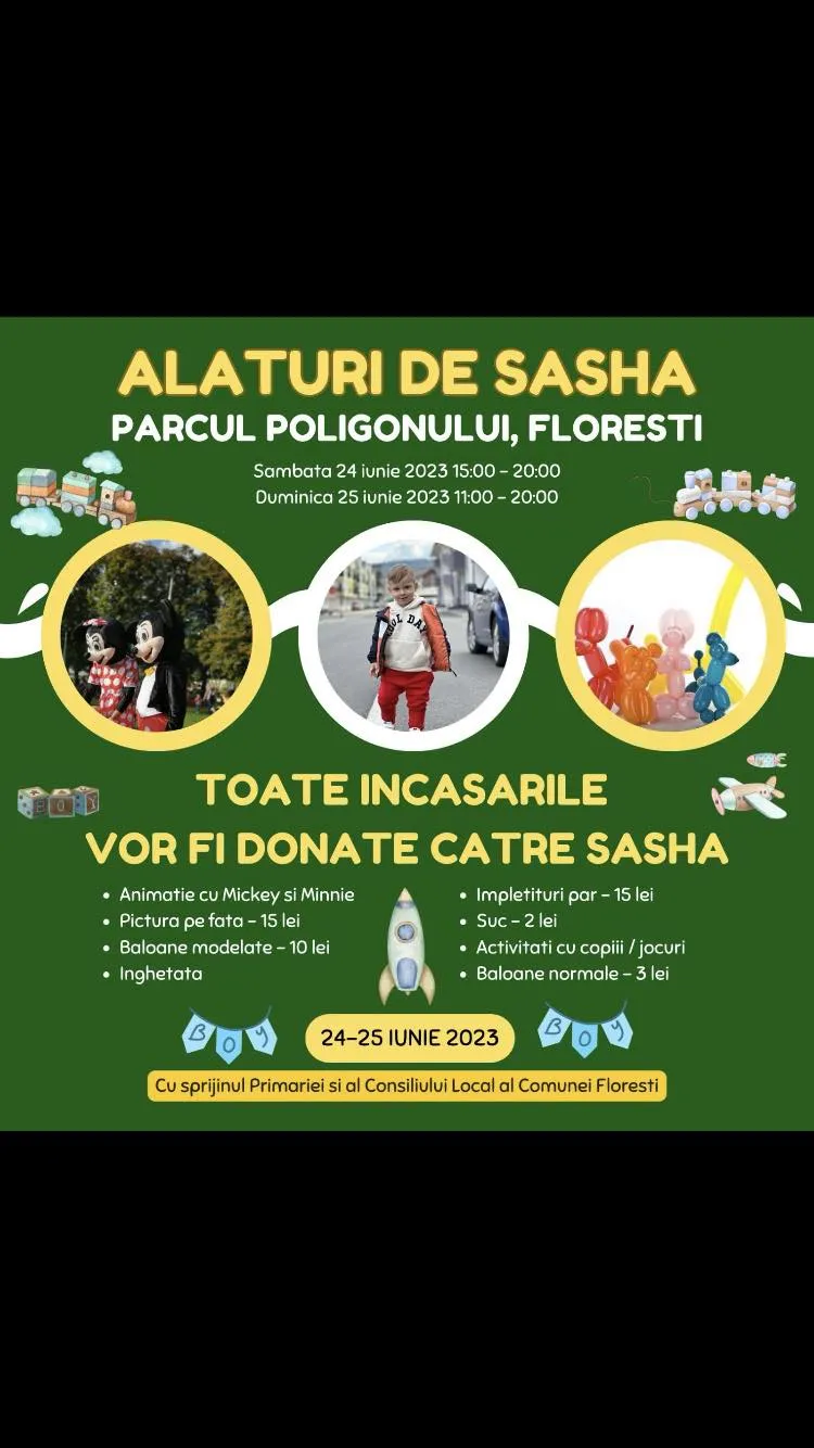 În 24 - 25 iunie, în Parcul Poligon, din Florești, va fi organizat un eveniment public, iar toate încasările vor fi donate acestei cauze.