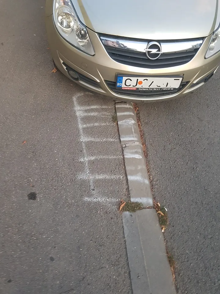 Pe strada Constantin Brâncuși, din Cluj-Napoca, un clujean și-a trasat singur parcarea din fața porții, pentru a parca el.
