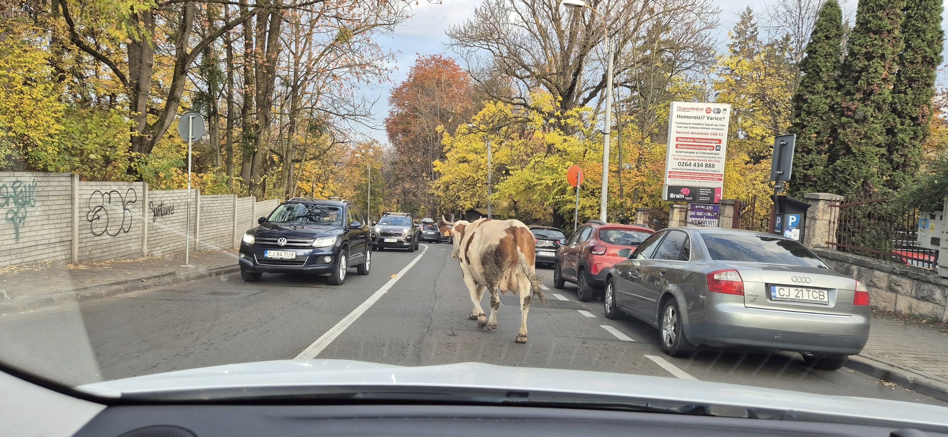 Clujenii fac haz de vaca ce rătăcește pe străzile din Cluj-Napoca la primele ore ale dimineții: „A ieșit de la club”