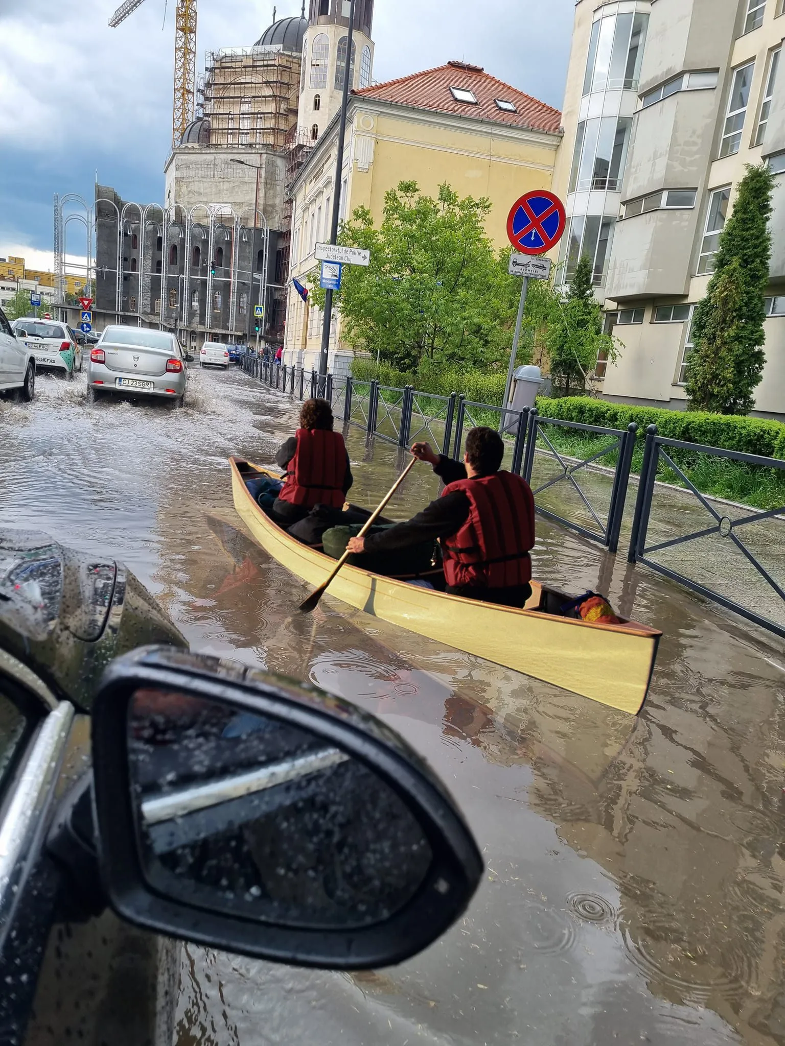 Clujenii ironici, după ce s-a inundat strada Avram Iancu: Poate Emil Boc se referea la Veneția, nu la Barcelona - FOTO
