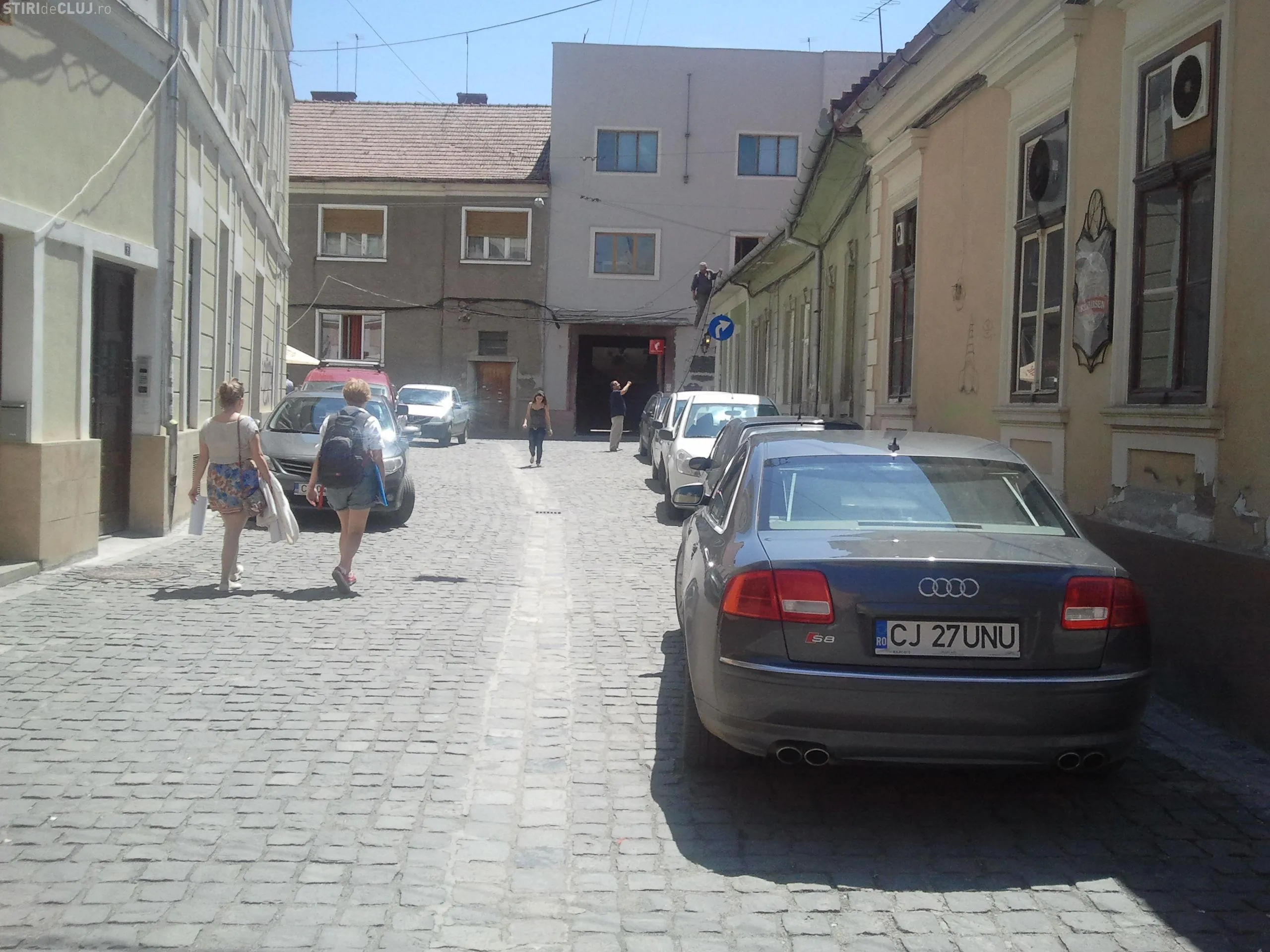 ”Poza este de pe strada Roosevelt din centrul Clujului si unde circulatia este permisa doar prin deschiderea barierei comandate de la primarie dupa verificarea pe camera video.