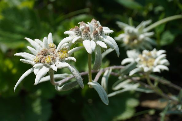 „Puteți în aceste momente admira frumoasa floare de colți de pe stâncăriile noastre! Această plantă, denumită Leontopodium nivale subsp. alpinum, este răspândită în Munții Europei.