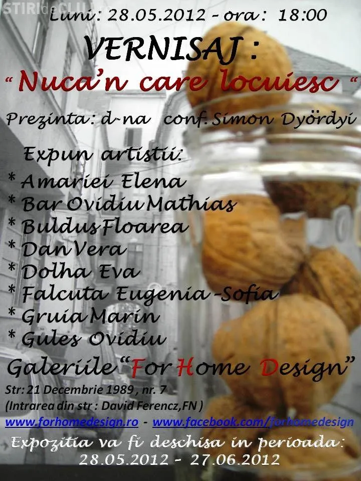 Expozitia de pictura "Nuca-n care locuiesc" va avea loc in perioada 28 mai - 27 iunie la sediul galeriei de pe strada 21 Decembrie 1989, Nr.7.