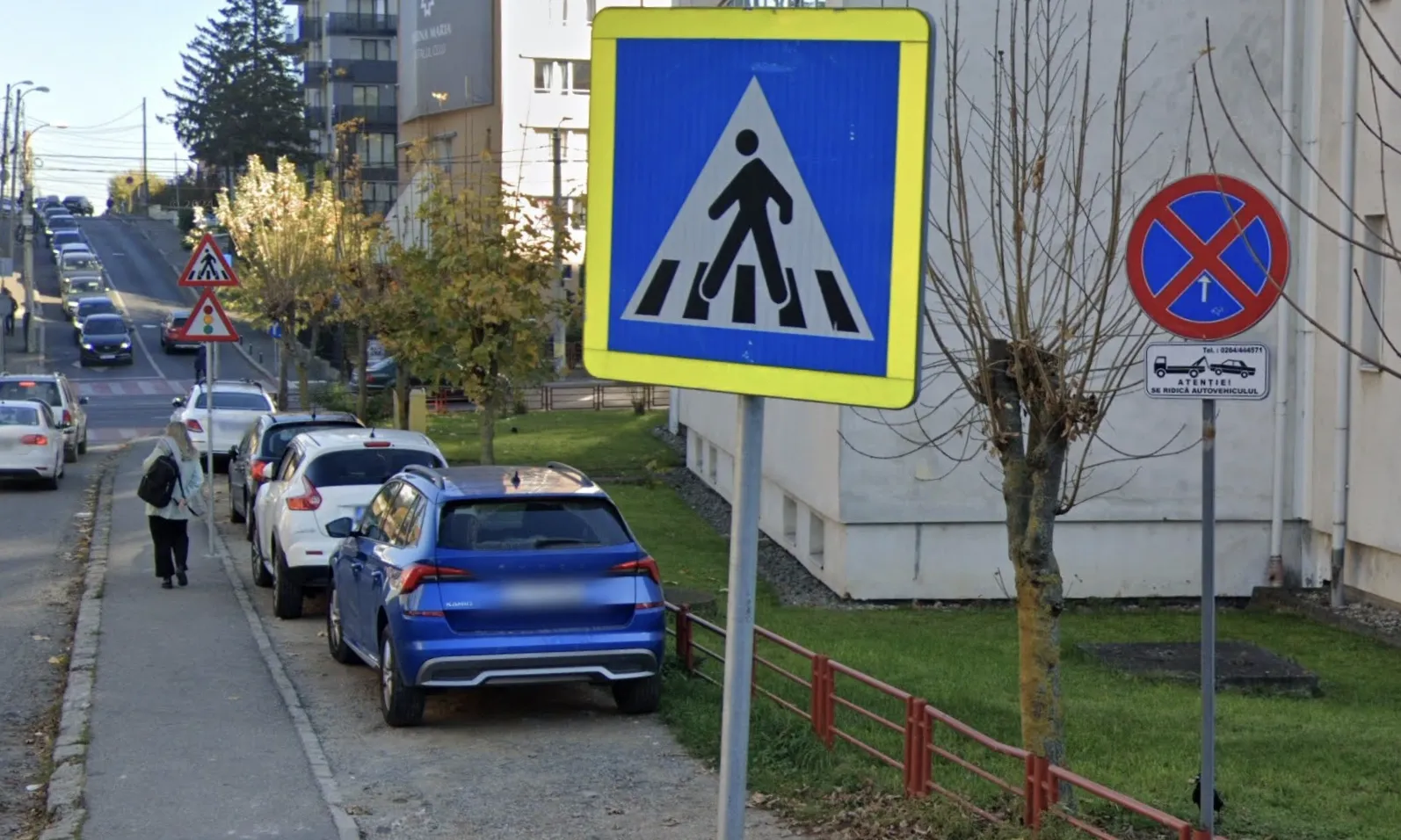 Sesizarea primită descrie clar situația tensionată din zonă: mașini parcate pe spațiul verde dintre două străzi importante, în ciuda existenței unui indicator care interzice parcarea și avertizează asupra ridicării vehiculului. Oamenii spun că, din cauza manevrelor repetate, terenul s-a transformat într-o zonă noroioasă, iar acesta este purtat de roțile mașinilor direct pe drum, murdărind asfaltul și punând în pericol siguranța rutieră.