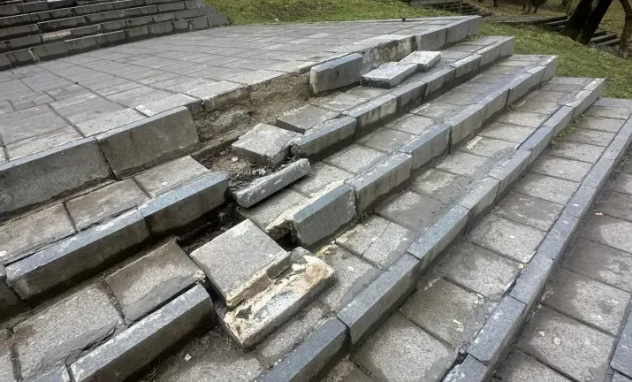 Un locuitor al orașului a transmis o sesizare către autorități, cerând remedierea urgentă a treptelor degradate din parc.