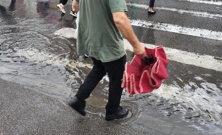 E cod portocaliu de furtună la Cluj, iar după câteva minute de ploaie, clujenii își pot scoate bărcile ca să navigheze prin oraș. La trecerea pentru pietoni din Piața Mărăști oamenii au făcut și o „competiție” de salturi.