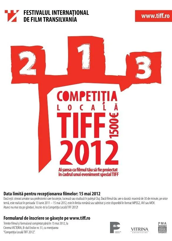 Filmele, impreuna cu formularul de inscriere completat (disponibil pe www.tiff.ro), trebuie trimise la Cinema VICTORIA, B-dul Eroilor, nr. 51.