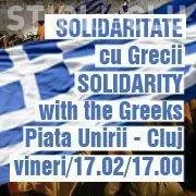 Protestele continua la Cluj-Napoca in Piata Unirii. Potrivit unui anunt postat de "Tinerii Maniosi" pe Facebook, clujenii sunt chemati vineri in piata pentru o noua cauza: "Solidaritate cu grecii. Solidaritate impotriva FMI, Troika!"