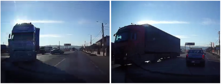 Filmarea a fost făcută dintr-o mașină care intra circula regulamentar, dinspre Cluj-Napoca, șoferul acesteia fiind norocos că nu avea o viteză prea mare. Incidentul a pornit de la un tir care ieșea regulamentar dintr-o parcare din stânga, intrând pe sensul de mers înspre oraș.