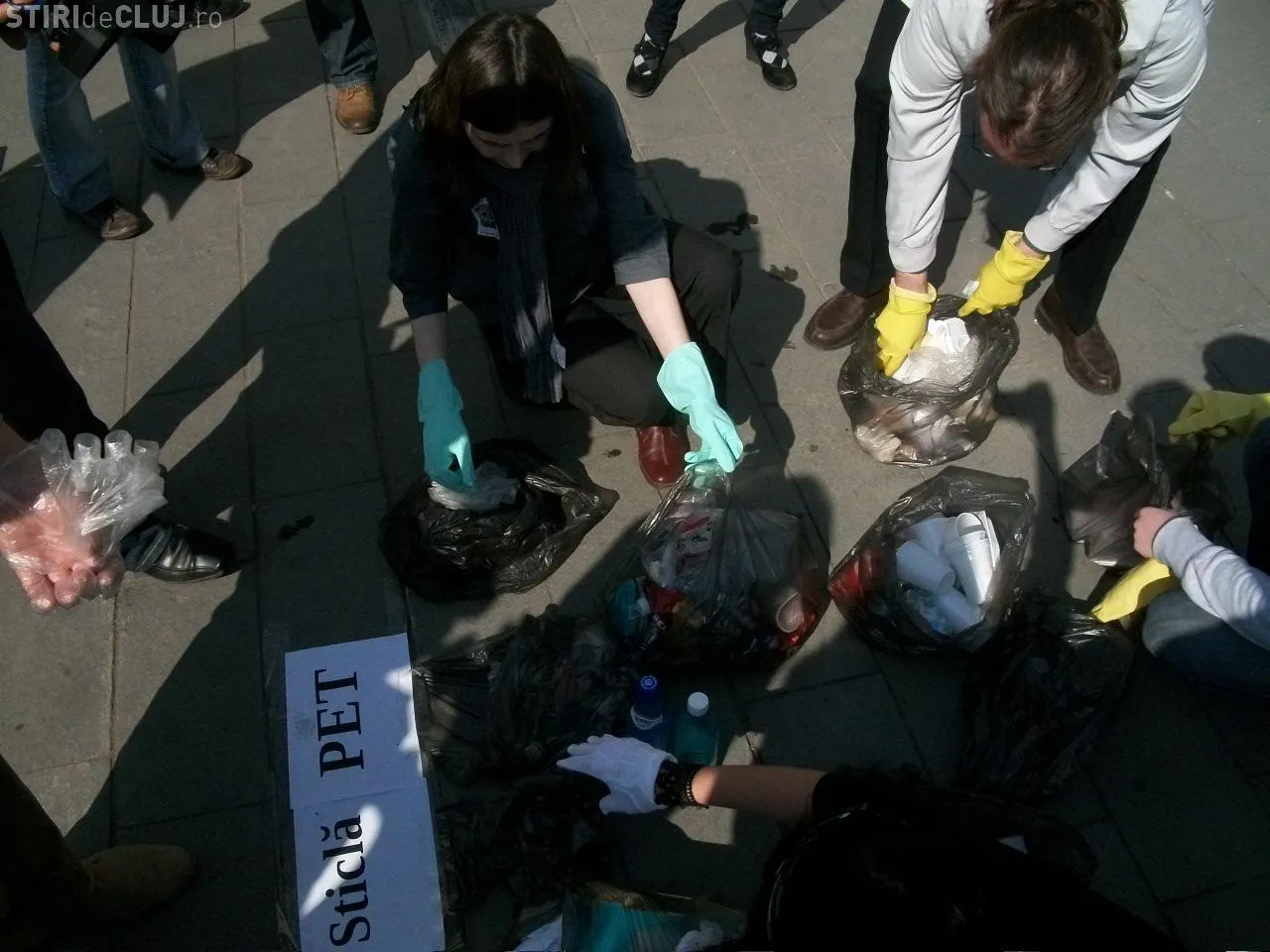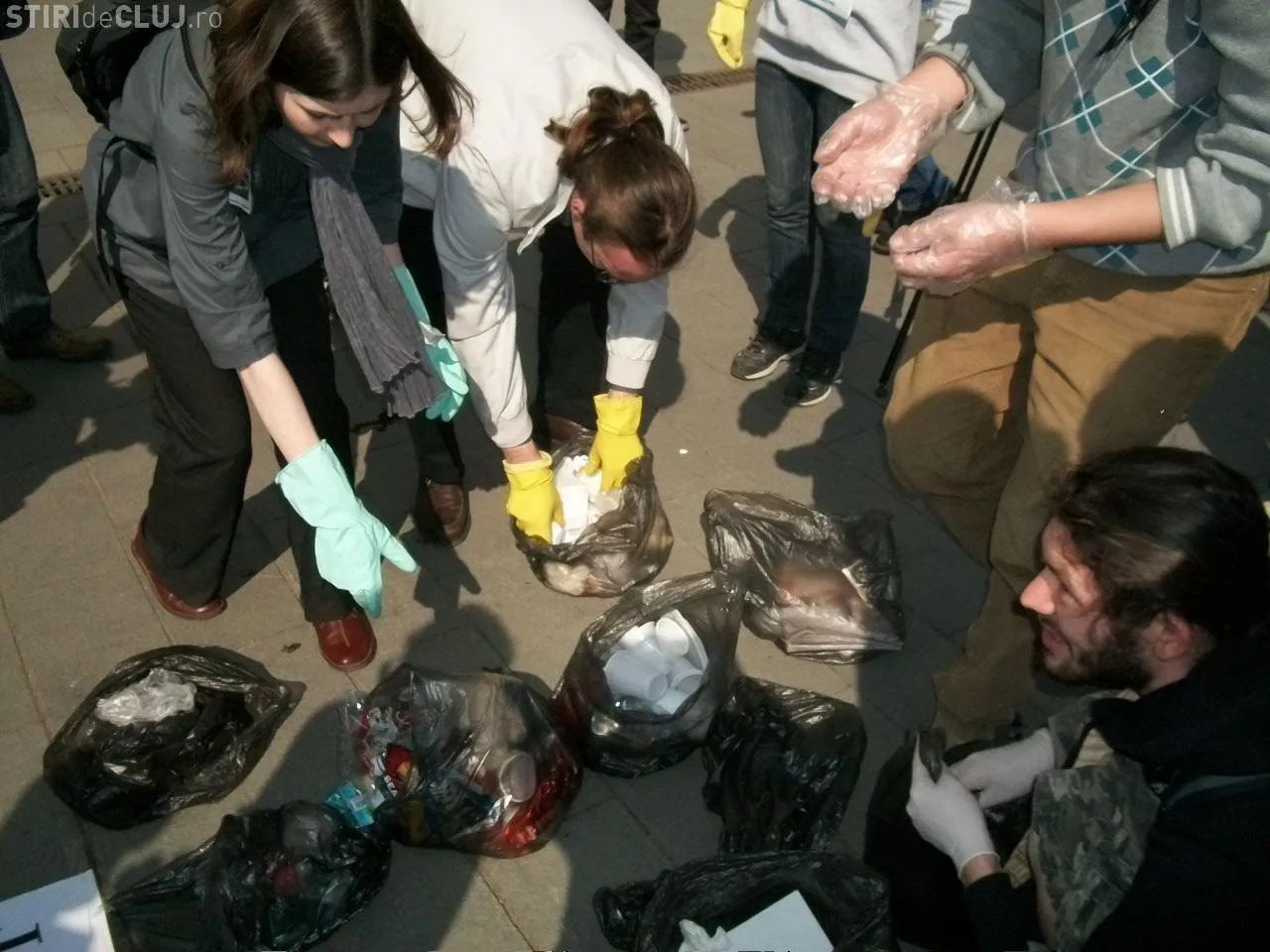 Cei din gLOC au inceput de pe bulevardul Eroilor, scormonind in gunoaie, dupa care le-au colectat selectiv. Dupa ce deseurile au fost stranse, au fost duse si lasate in fata sediului Consiliul Judetean Cluj.